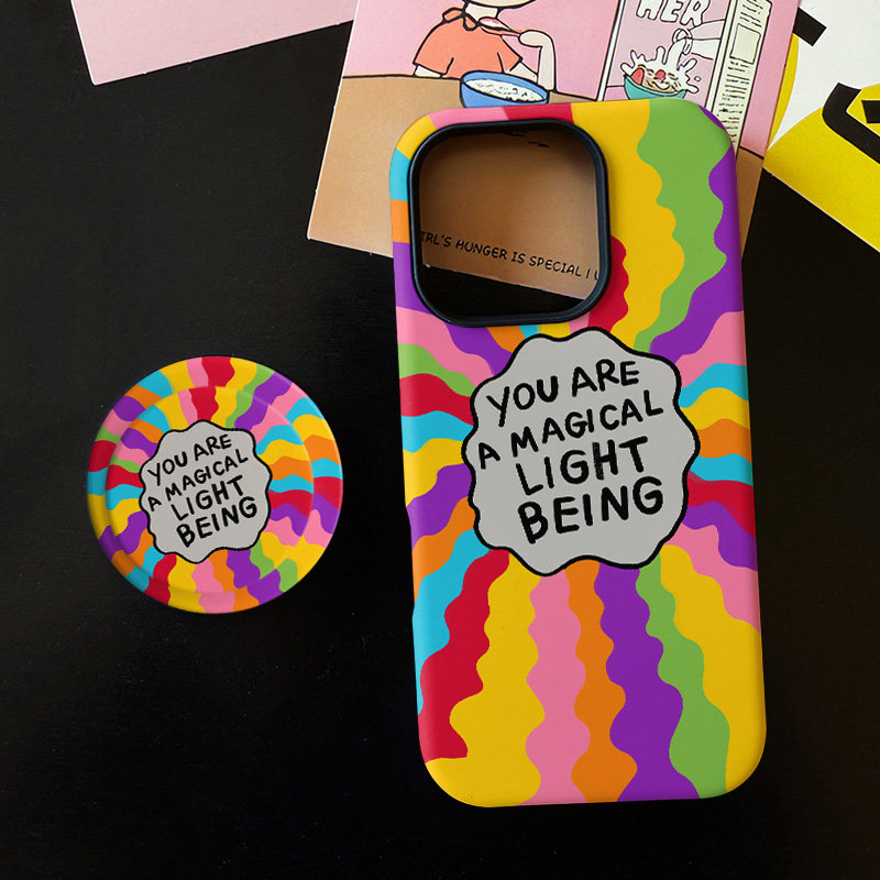 彩虹光波适用苹果17promax手机壳iphone16pro菲林磁吸支架个性华为P80小米15小众vivo防摔保护壳oppo涂鸦