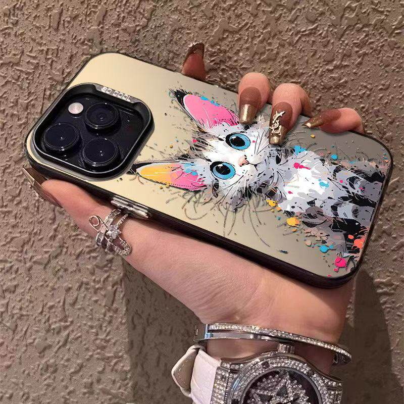 可爱多彩猫苹果15适用iPhone13/11/12/14/16Promax手机壳彩银新款