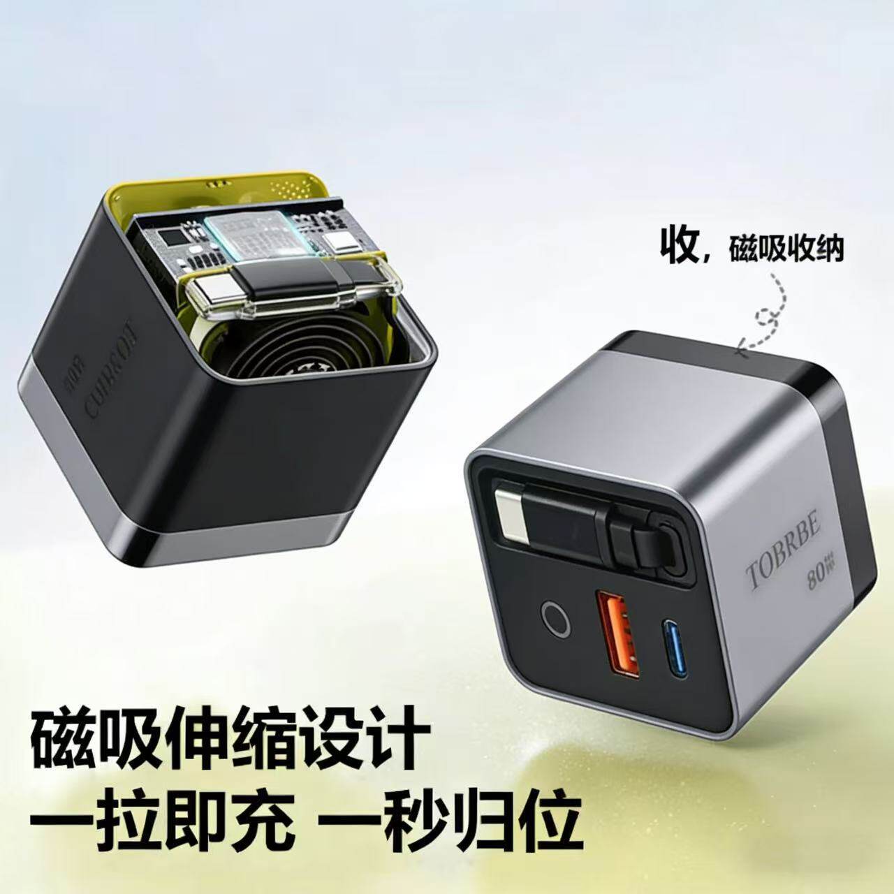 80W氮化镓充电器PD快充头Type-C多口自带伸缩线适用苹果华为小米vivo手机