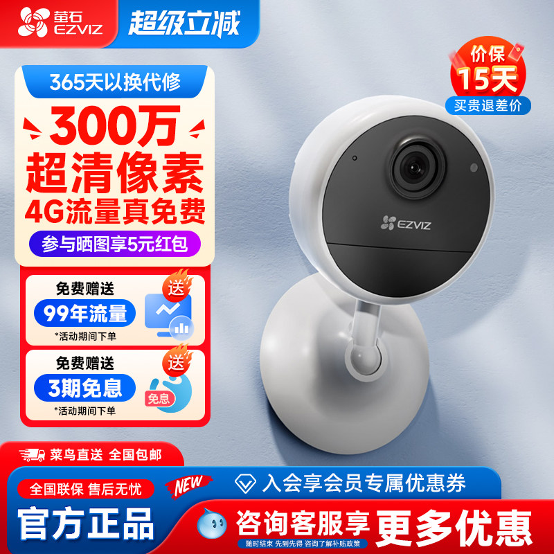 萤石云CB1终身免费流量4G无线免插电打孔家用监控摄像头手机远程