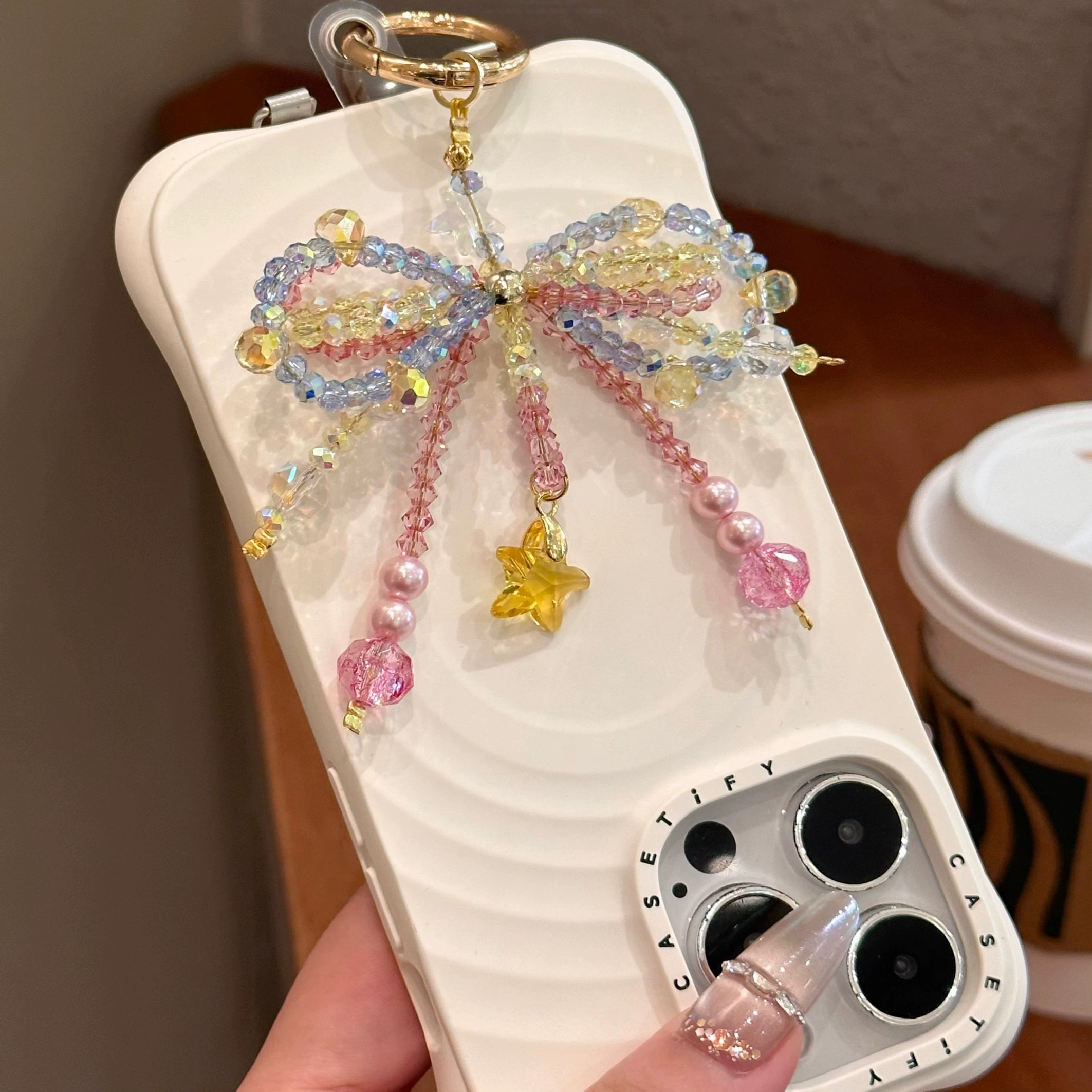 【甜心教主】爆闪粉色串珠蝴蝶结手机链女少女心挂件挂饰配饰新款