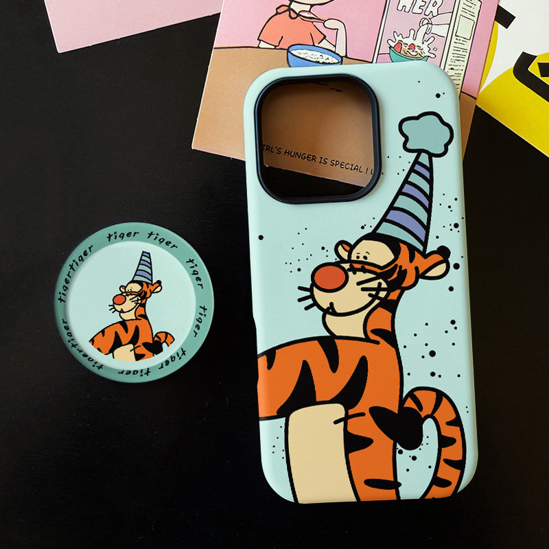 派对跳跳虎适用苹果17promax手机壳iphone16pro菲林磁吸支架个性华为P80小米15小众vivo防摔保护壳oppo卡通风