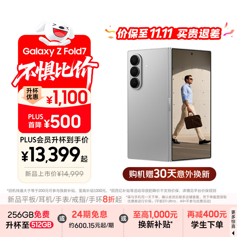 三星【价保至11.11】Samsung Galaxy Z Fold7 256GB免费升杯512GB 超轻薄折叠屏手机 AI手机 星夜银