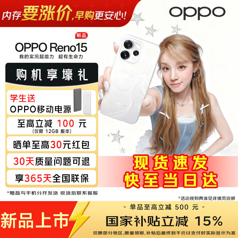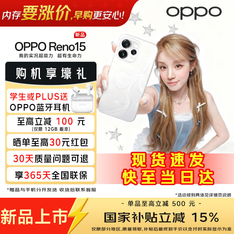 OPPO【国家补贴减15%】 OPPO Reno15 星光蝴蝶结 2亿像素超清影像 超出圈实况 5GAI拍照手机reno15 星光蝴蝶结 12GB+256GB