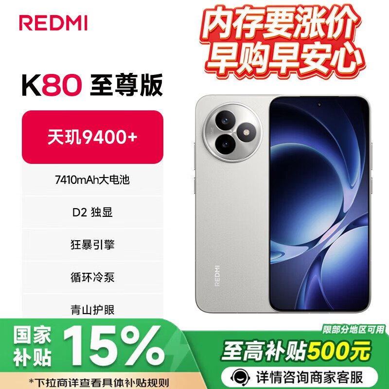 小米REDMI K80至尊版【国家补贴15%】新品红米5G全网通手机 天玑9400+ 7410mAh大电池 月岩白 12+256GB 官方标配