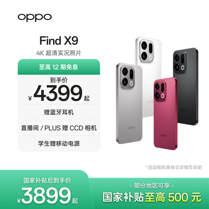OPPO Find X9 旗舰手机 4K 超清实况照片 7025mAh 冰川电池 丹霞色彩还原镜头 国家补贴 大内存性价比 霜白 16GB+512GB