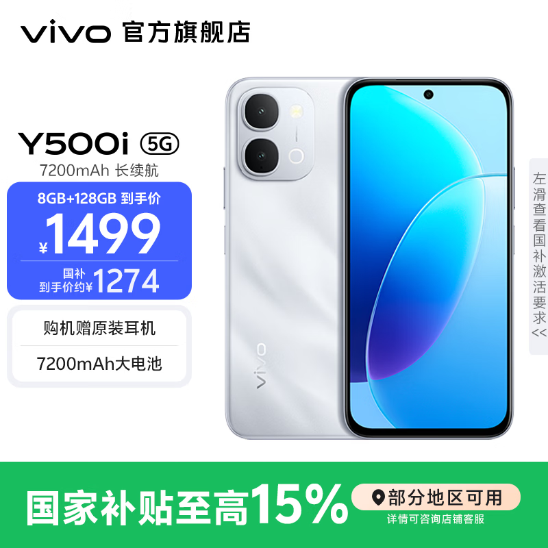 vivo Y500i 满级防水防尘 全面抗摔 7200mAh大电池 第二代骁龙4 新品5G手机 大内存性价比 星河银 8GB+128GB