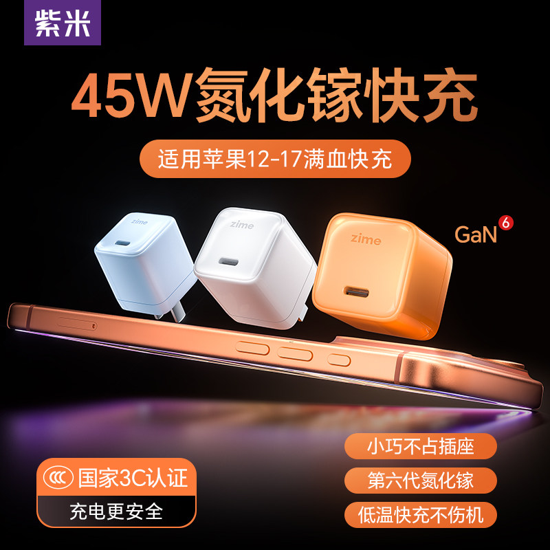 紫米45W迷你氮化镓充电头PD快充头40W适用iPhone17ProMax苹果16专用15Pro华为小米14手机正品Typec充电器套装
