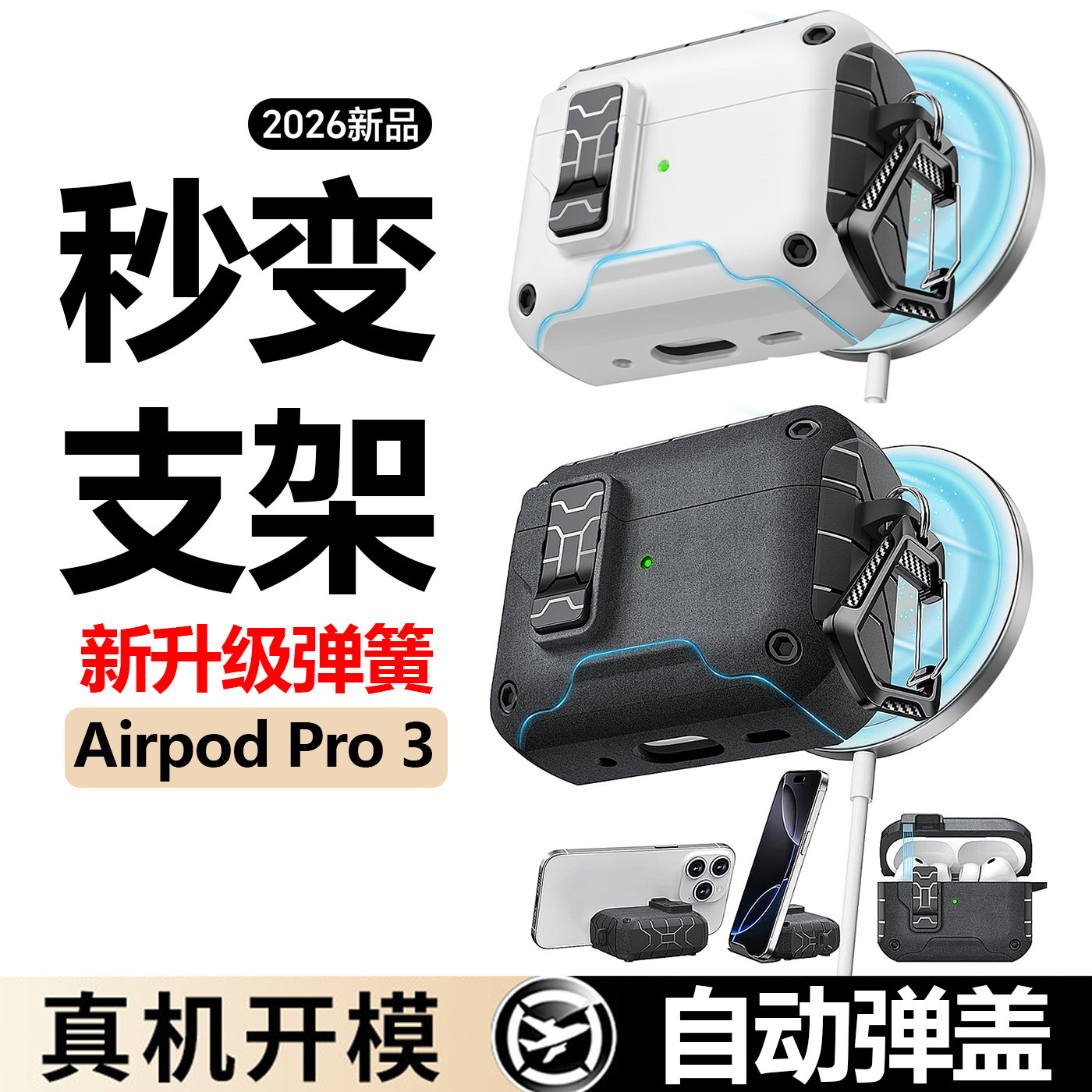 磁吸自动弹盖适用苹果airpodspro3保护套Airpods4降噪版锁扣耳机壳创意手机支架耳机保护壳软壳防摔pro2