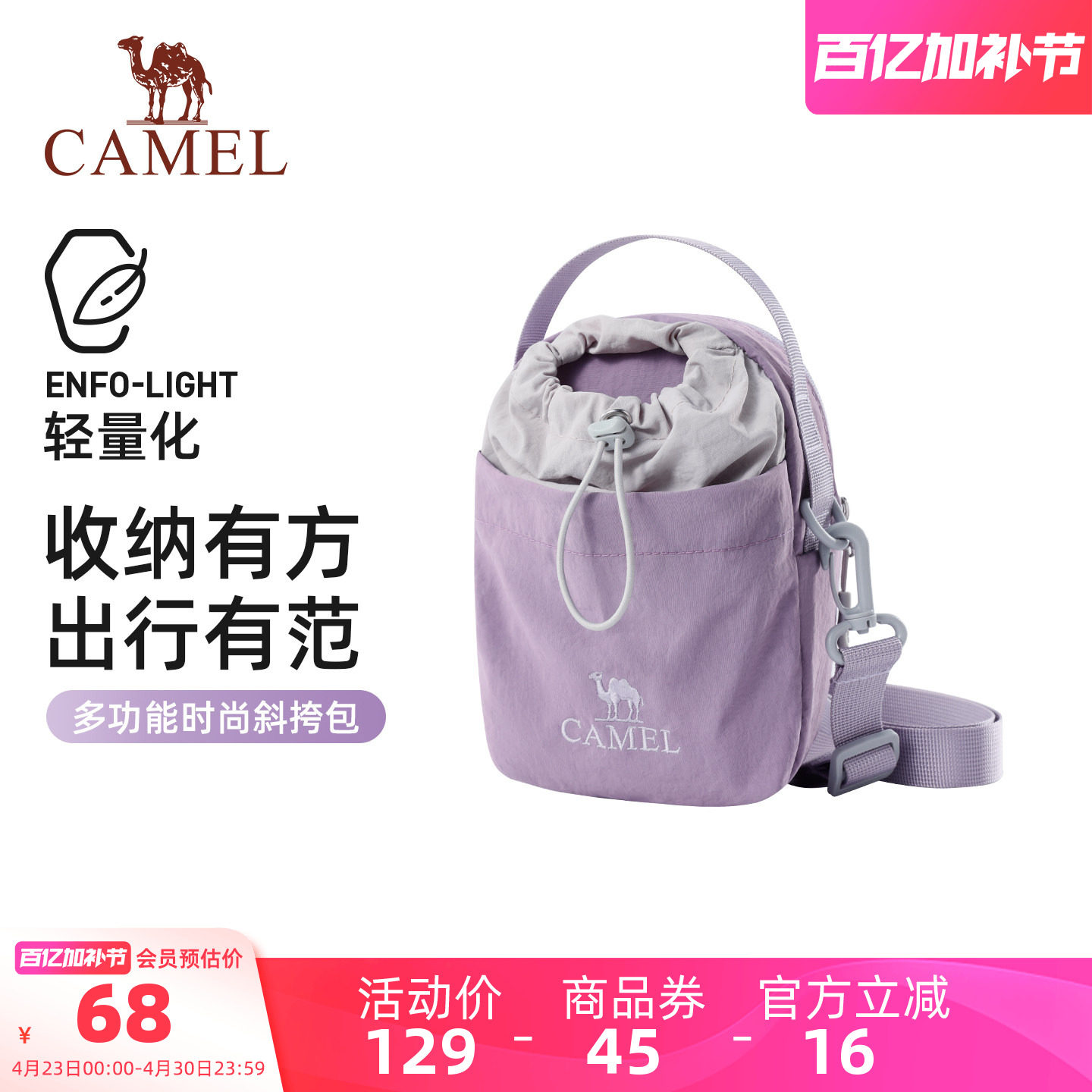骆驼斜挎包时尚轻便户外徒步单肩斜挎手机包女包便携轻量化水壶包