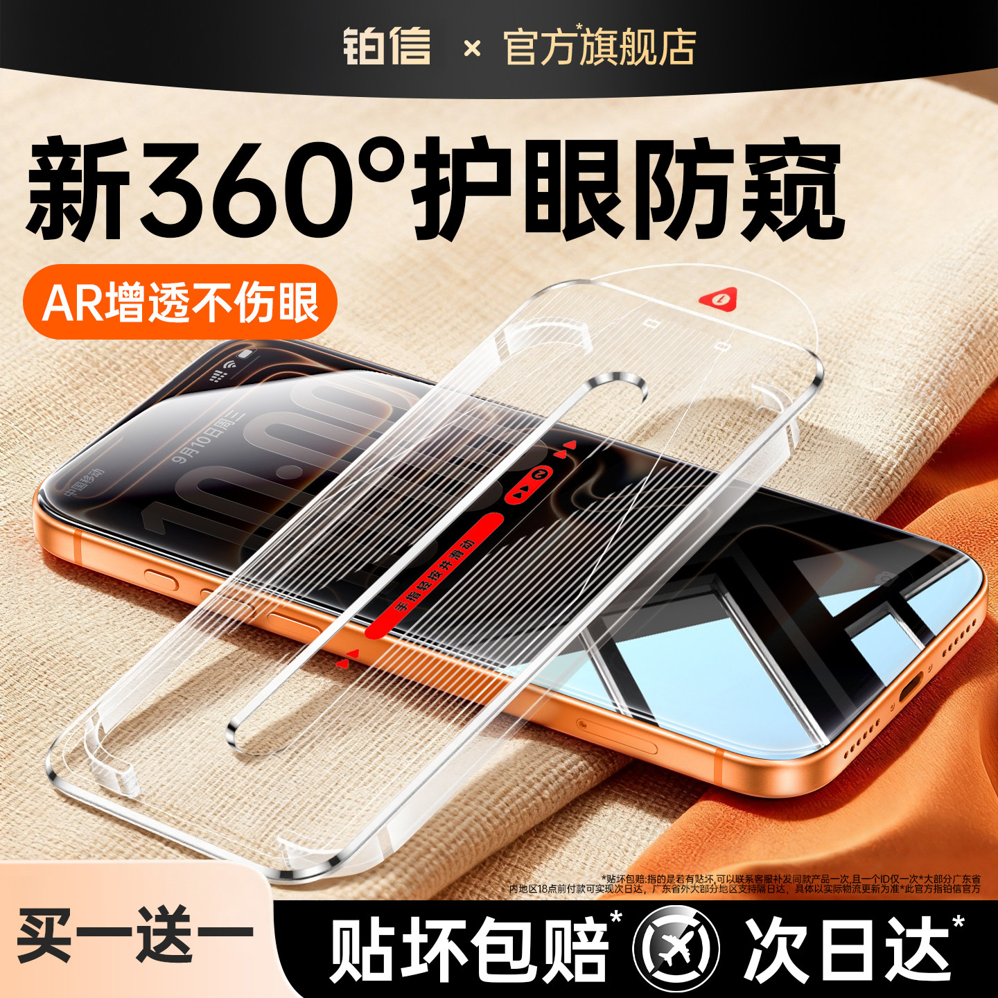 【360度护眼防窥】铂信适用苹果17promax防窥膜iPhone16防窥钢化膜13/15pro手机膜14防偷窥12/11全屏air覆盖