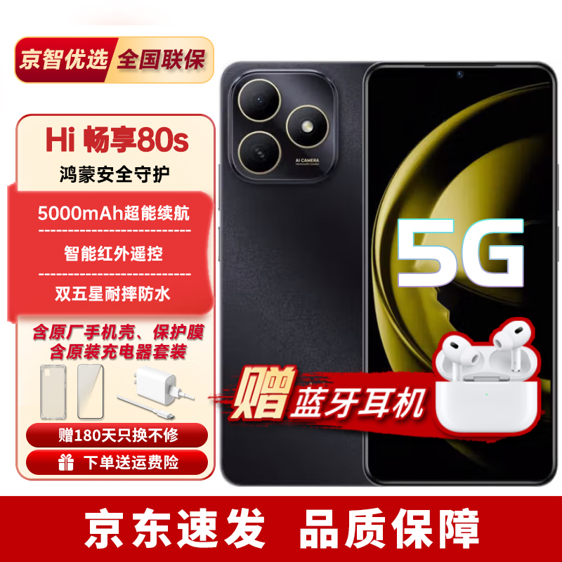 华为智选手机新机2025上市 智选5G【24期|免息】Hi畅享80s大电池 地震预警五星抗跌耐摔 鸿蒙生态 曜石黑 16GB(8+8)+256GB 晒单送蓝牙耳机 官方标配