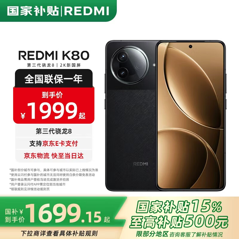 小米红米K80【国家补贴15%】 新品5G手机 小米红米手机 玄夜黑 12GB+256GB