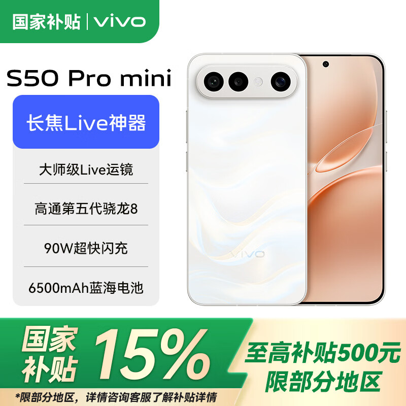 vivoS50 Pro mini 新品5G手机 主摄级长焦Live 第五代骁龙8 湿手秒开超声波指纹2.0 AI拍照手机 告白 12GB+512GB 官方标配