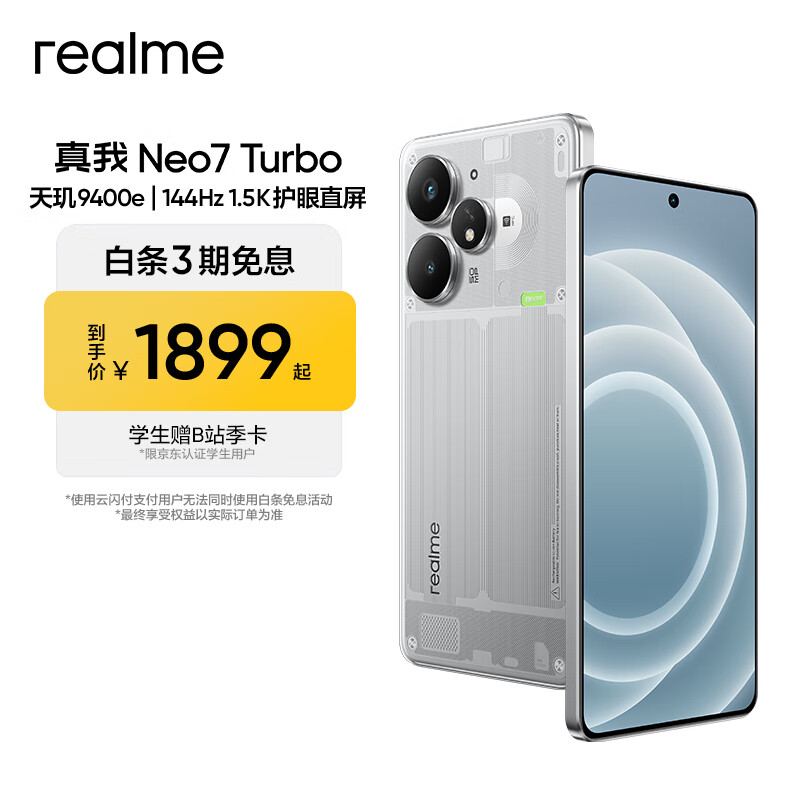 真我Neo7 Turbo 天玑9400e 超薄续航大电池护眼直屏 智能游戏AI性能手机 透明灰 12GB+256GB