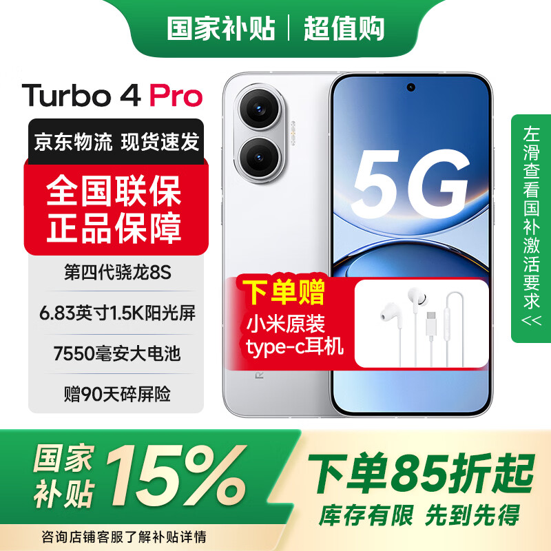 小米Xiaomi红米turbo4 pro 【下单享好礼】第四代骁龙8S 1.5K分辨率120Hz高刷 5G手机 白色 12GB+256GB 全网通