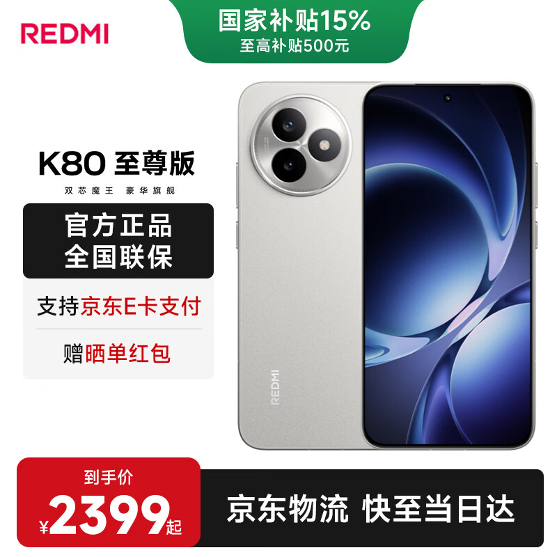 小米红米K80至尊版 【国家补贴】新品5G小米手机 天玑9400+ 7410mAh大电池 月岩白 12GB+256GB 官方标配