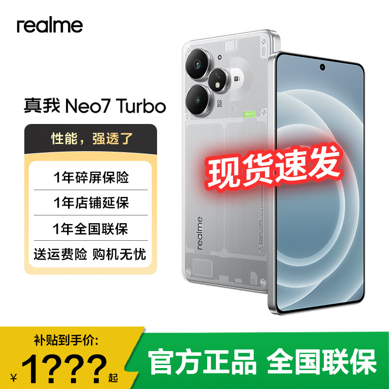 realme【国家补贴15%】OPPO 真我Neo7 Turbo 天玑9400e 超薄续航大电池护眼直屏 智能游戏AI性能手机 透明灰 12+256GB 官方标配