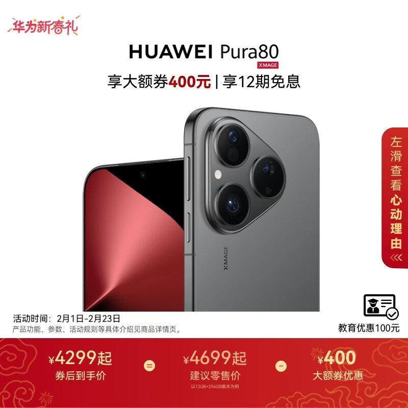 HUAWEI Pura 80 丝绒直屏 红枫原色影像 全新鸿蒙AI 华为智能手机 丝绒黑 12GB+512GB