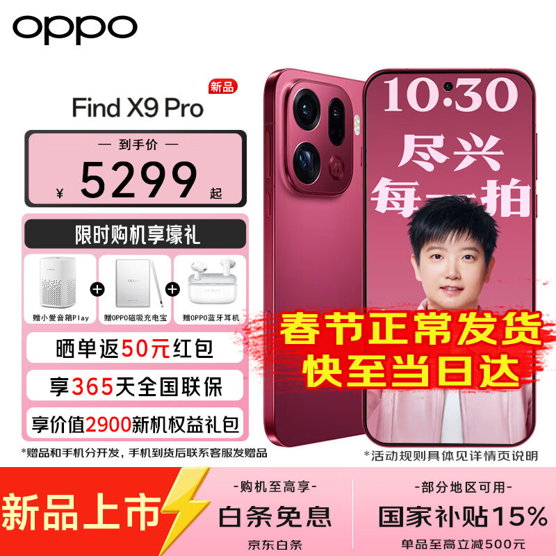 OPPO【国家补贴减15%】OPPO Find X9 Pro 旗舰手机 oppo find x9 pro新品 哈苏2亿长焦镜头5G旗舰手机 追光红 16GB+512GB 官方标配(好礼三选一)
