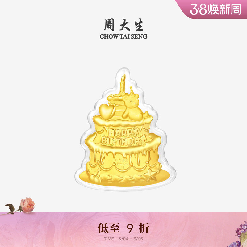 周大生黄金玫瑰花蛋糕金贴摆件投资金足金手机贴送女朋友生日礼物