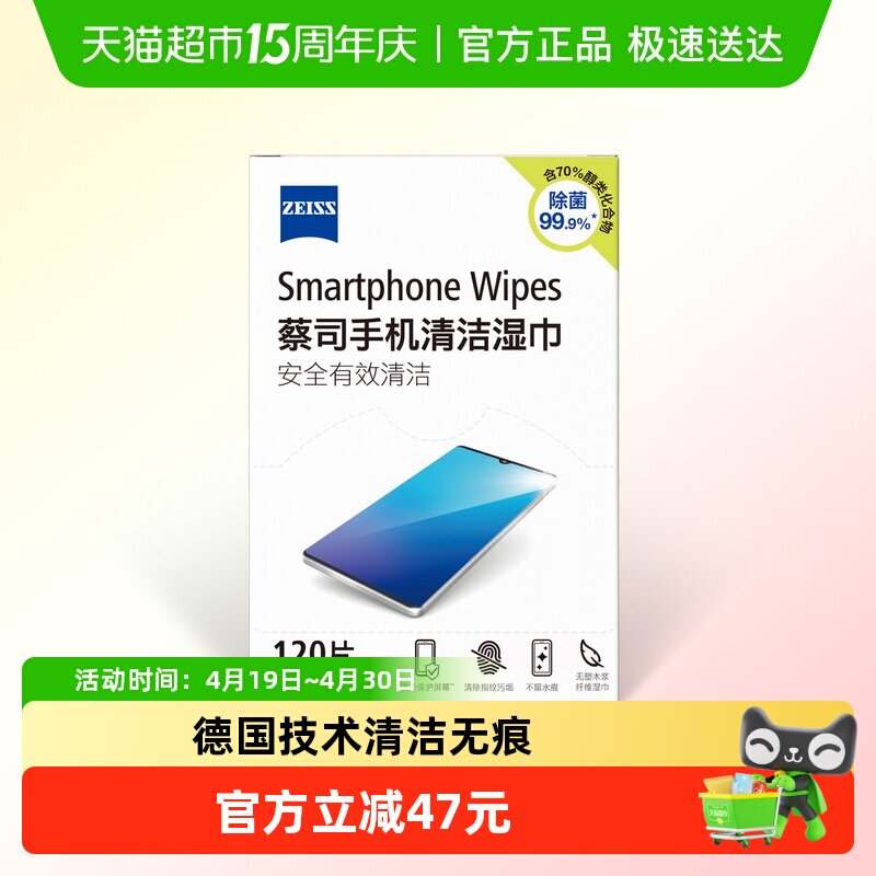 德国蔡司擦镜纸手机电脑macbook屏幕清洁湿巾120片除菌70%浓度