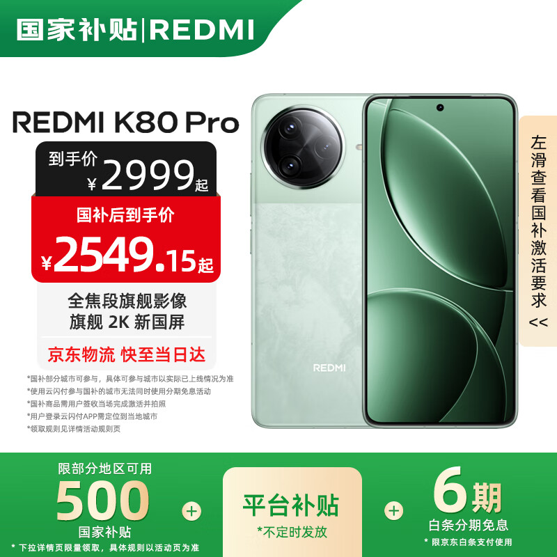 小米REDMI 红米K80 Pro 国家补贴 新品5G小米红米手机 山峦青 16GB+512GB 官方标配