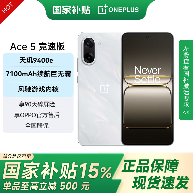 一加 Ace 5 竞速版 【国家补贴】天玑 9400e 风驰游戏内核 新品游戏性能手机 逐浪白 12GB+256GB 官方标配【现货速发】