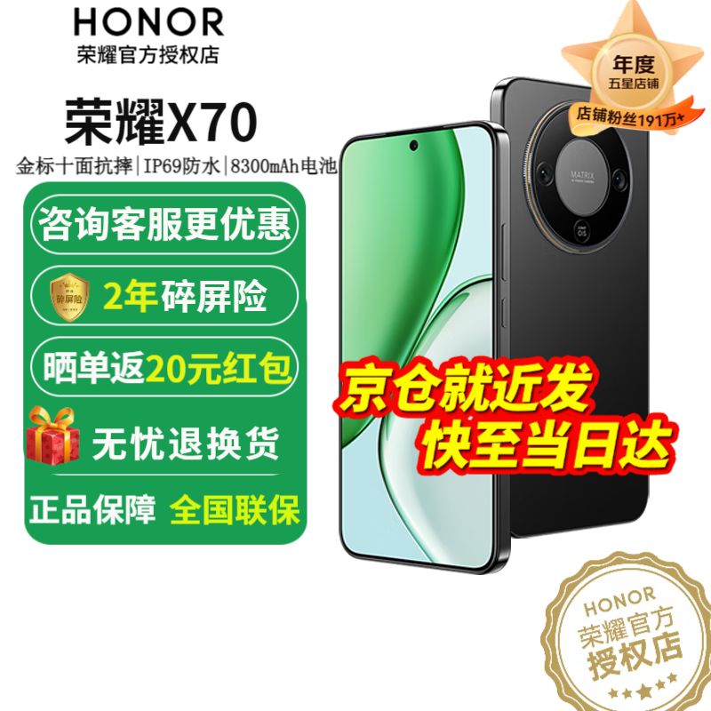 荣耀x70 新品5G手机 手机荣耀 幻夜黑 8GB+128GB全网通 官方标配