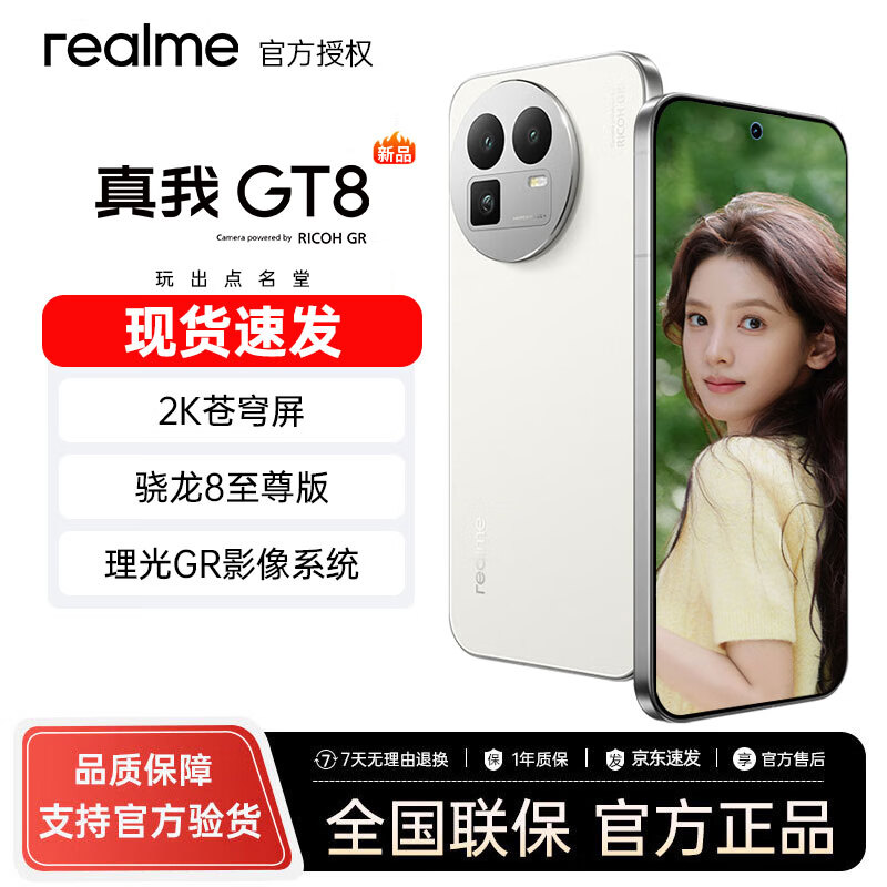 realme真我GT8 骁龙8至尊版理光GR影像系统 5000万潜望长焦摄像头2K苍穹屏AI智能拍照 电竞游戏手机 怀特 12GB+256GB