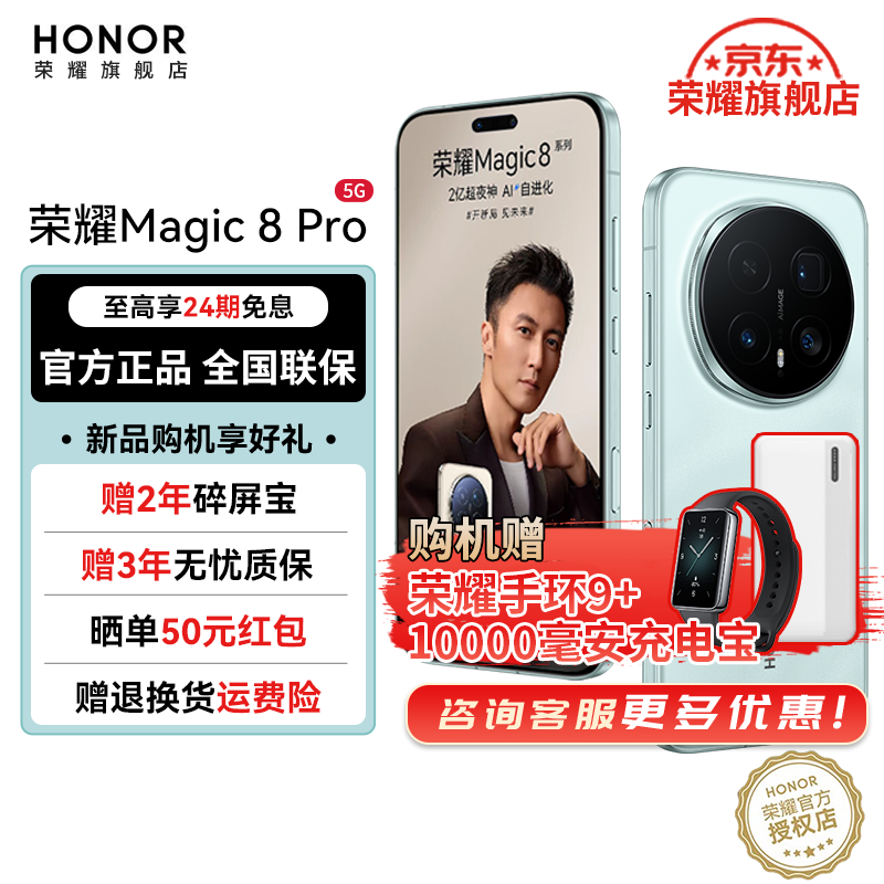 荣耀(HONOR)Magic8 Pro 新品5GAI手机 第五代骁龙8至尊版 YOYO智能体 超夜神长焦 谢霆锋同款 天青色 16GB+512GB【2年碎屏险】 官方标配