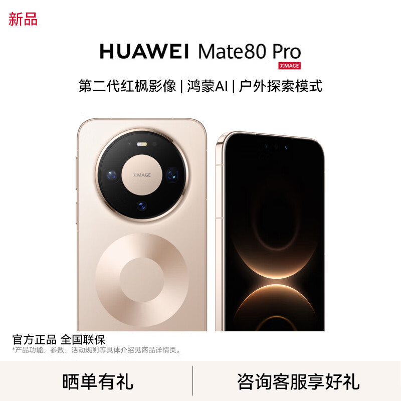 HUAWEI Mate 80 Pro 第二代红枫影像鸿蒙AI直屏鸿蒙手机华为mate80pro手机 官方正品 晨曦金 16GB+512GB 全网通 官方标配