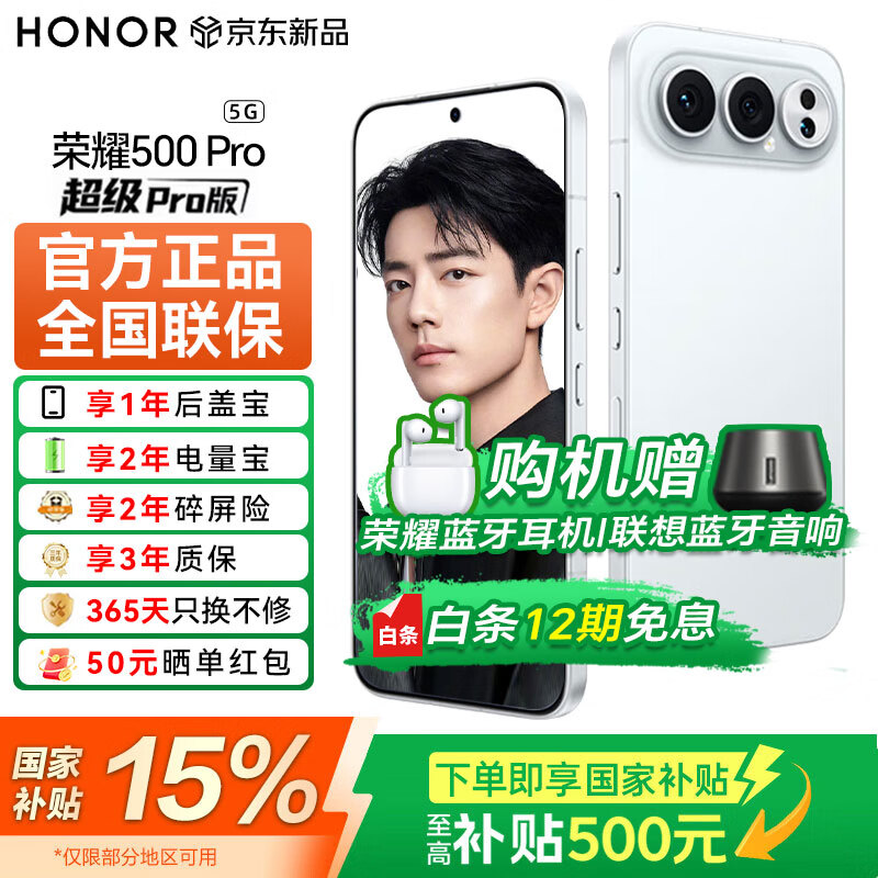 荣耀500 Pro 【国家补贴】5G手机 超级Pro版 骁龙8至尊旗舰芯 2亿人像全能实况 手机荣耀 肖战同款 月光银 12GB+512GB 官方标配