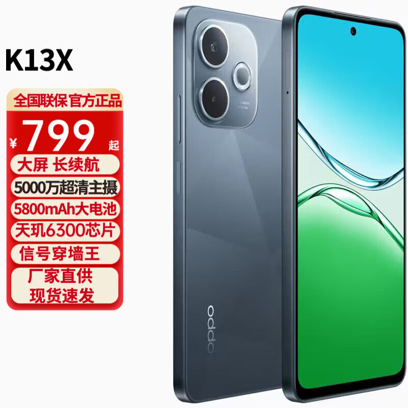 OPPO K13x 全新千元性能神机 信号穿墙王 天玑6300 IP69防尘防水 全网通 新款5G手机 曜黑 8GB+256GB