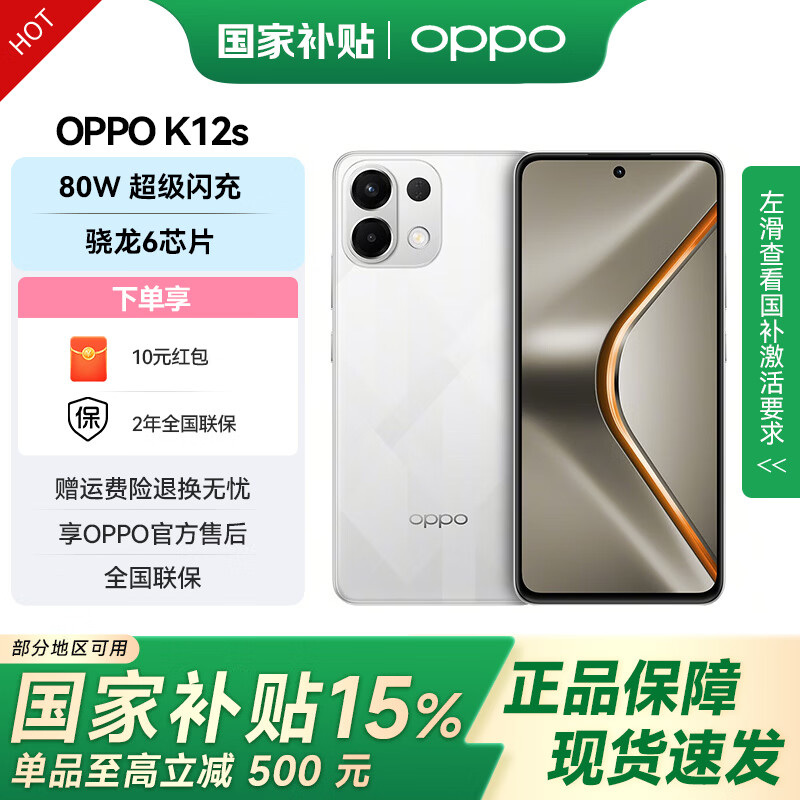 OPPO K12s 【现货速发】 7000mAh长寿大电池 80W超级闪充 骁龙学生游戏千元新款5G手机 星芒白 8GB+256GB 官方标配