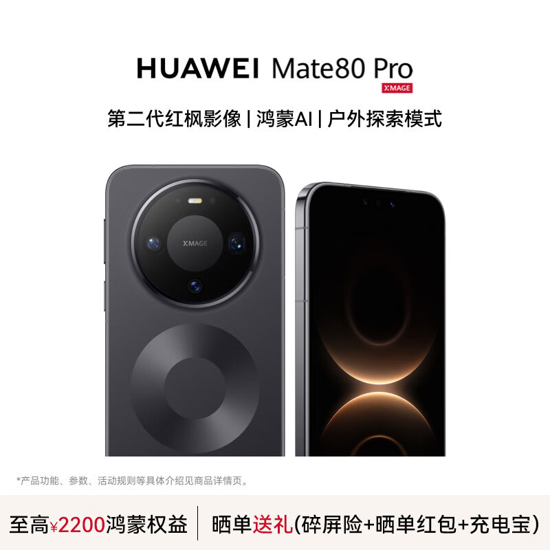 HUAWEI Mate 80 Pro 新品旗舰手机 华为mate80pro手机 赠碎屏险 第二代红枫影像鸿蒙AI直屏鸿蒙手机 曜石黑 12GB+512GB 麒麟9030 官方正品 现货速发 赠碎屏险
