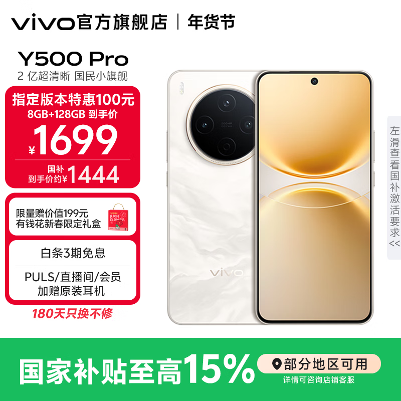 vivo Y500 Pro 2亿HP5旗舰级主摄 持久流畅OriginOS 6 十倍时长IP68+IP69防水 国家补贴 新品手机 祥云金 8GB+256GB 官方标配