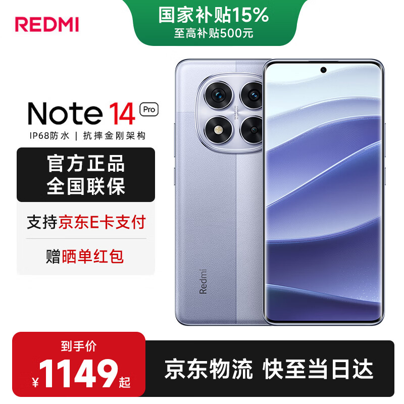 小米红米 Note14 Pro【国家补贴】 新品5G小米红米手机 暮光紫 12GB+256GB 官方标配