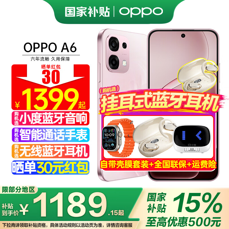 OPPO【至高立减15%】OPPO A6 手机 oppoa6 越级流畅双引擎 IP69防水 5G耐用抗摔新款智能手机 官方正品 粉梦生花 8+256GB