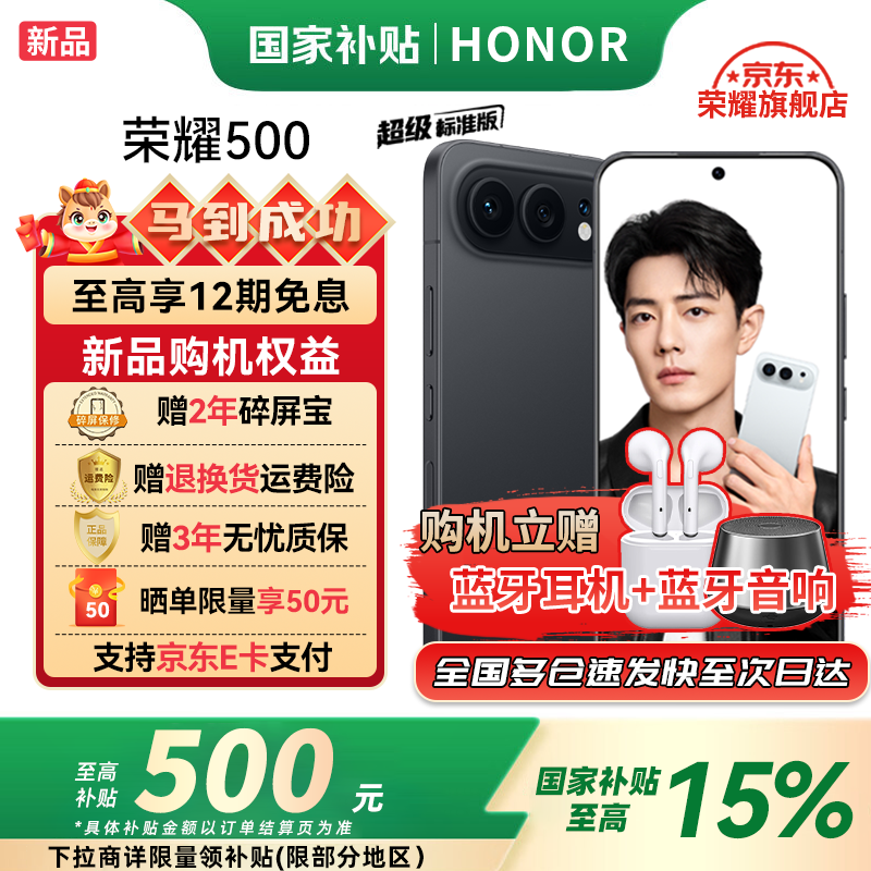 荣耀500 【肖战同款】新品5G手机 超级标配版 2亿人像全能实况 【国家补贴】 曜石黑 12GB+256GB【2年碎屏险】 官方标配
