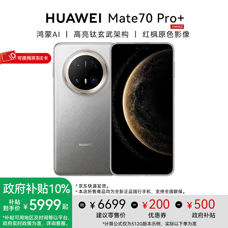 华为Mate 70 Pro+手机【政府补贴500元 全新国行正品】 金丝银锦 16GB+512GB 官方标配