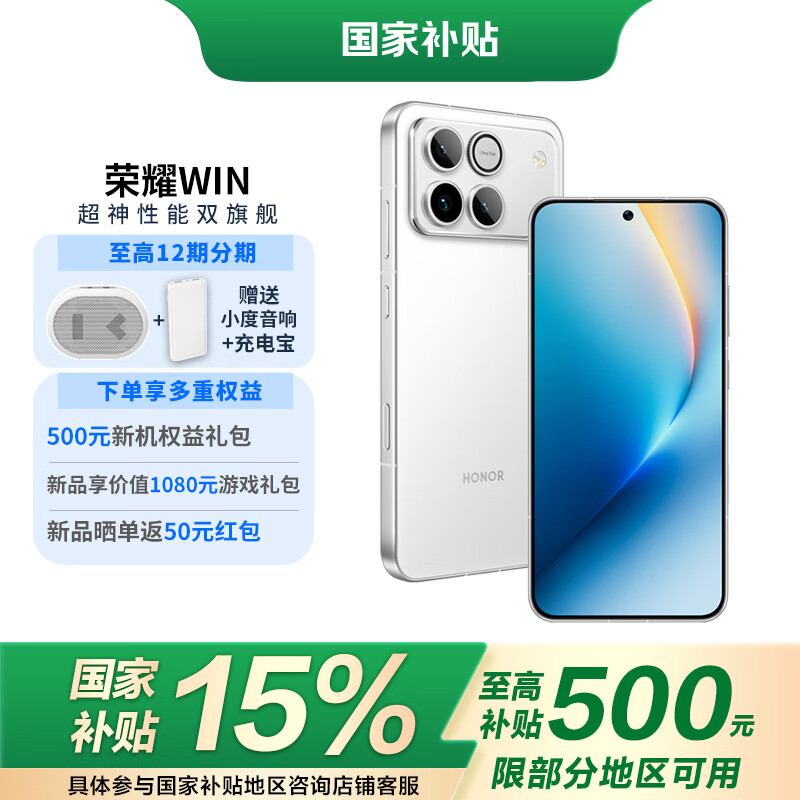 荣耀WIN 新品来袭【张予曦同款】【国家补贴15%】第五代骁龙8至尊版 荣耀东风涡轮散热 AI 游戏手机 指定赢 16GB+512GB 官方标配