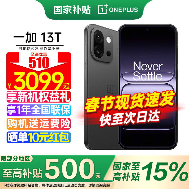 一加【国家补贴立减15%】一加 13T 手机 一加13 t 性能小直屏 骁龙8至尊版 冰川电池 AI 5G游戏手机 云墨黑 16+512GB 官方标配【全国联保】