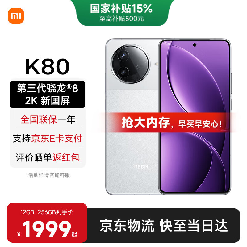小米REDMI 红米k80 国家补贴 小米新品5G红米手机 雪岩白 12GB+256GB 【官方标配】