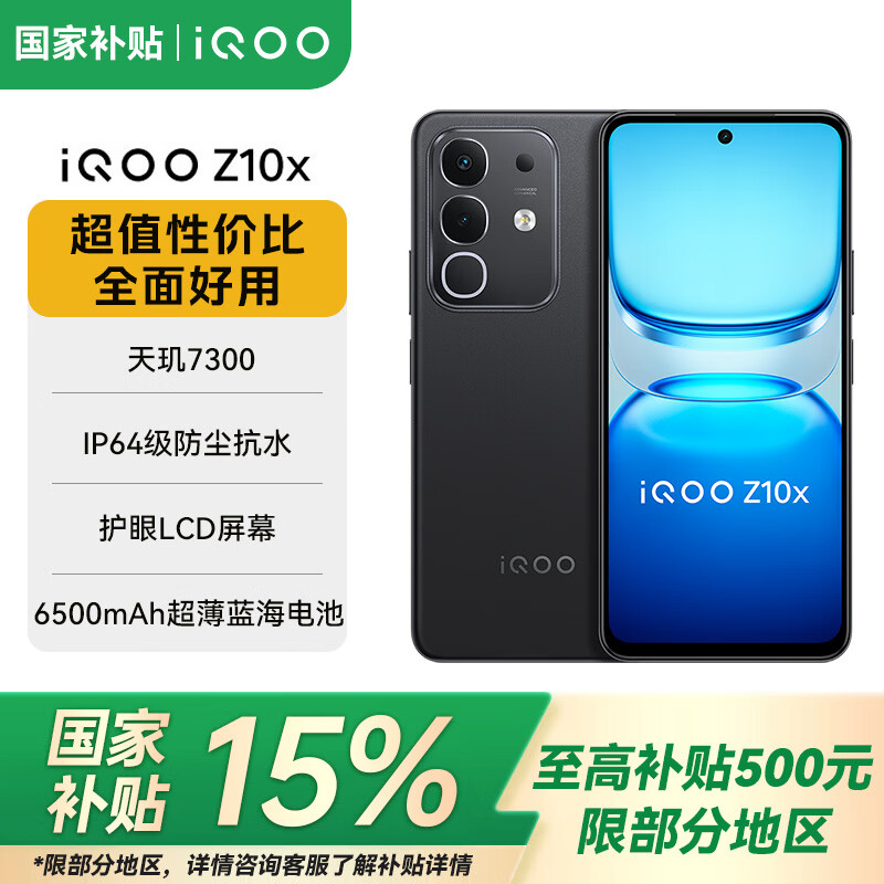 vivoiQOO Z10x 【国家补贴15%】 6500mAh超薄蓝海电池 天玑7300 学生电竞游戏手机 星穹黑【标配版】 8GB+128GB