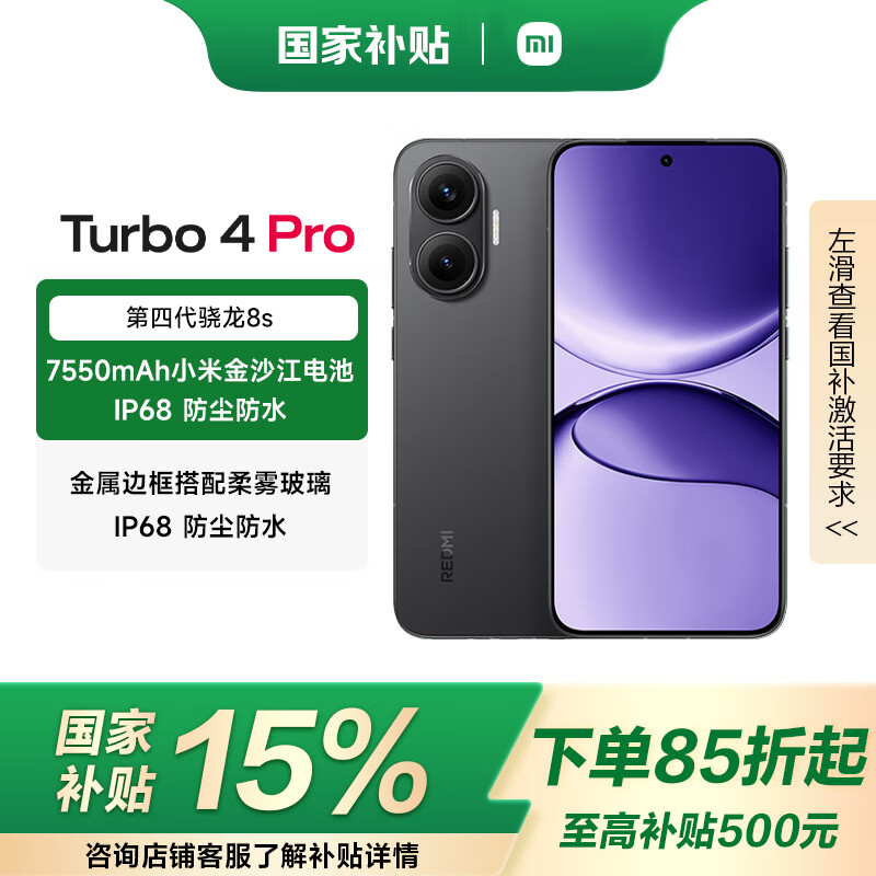 小米(MI)REDMI Turbo 4 Pro【小米精选】 第四代骁龙8s 7550mAh长续航 小米红米5G手机 黑色 12+256GB 官方标配