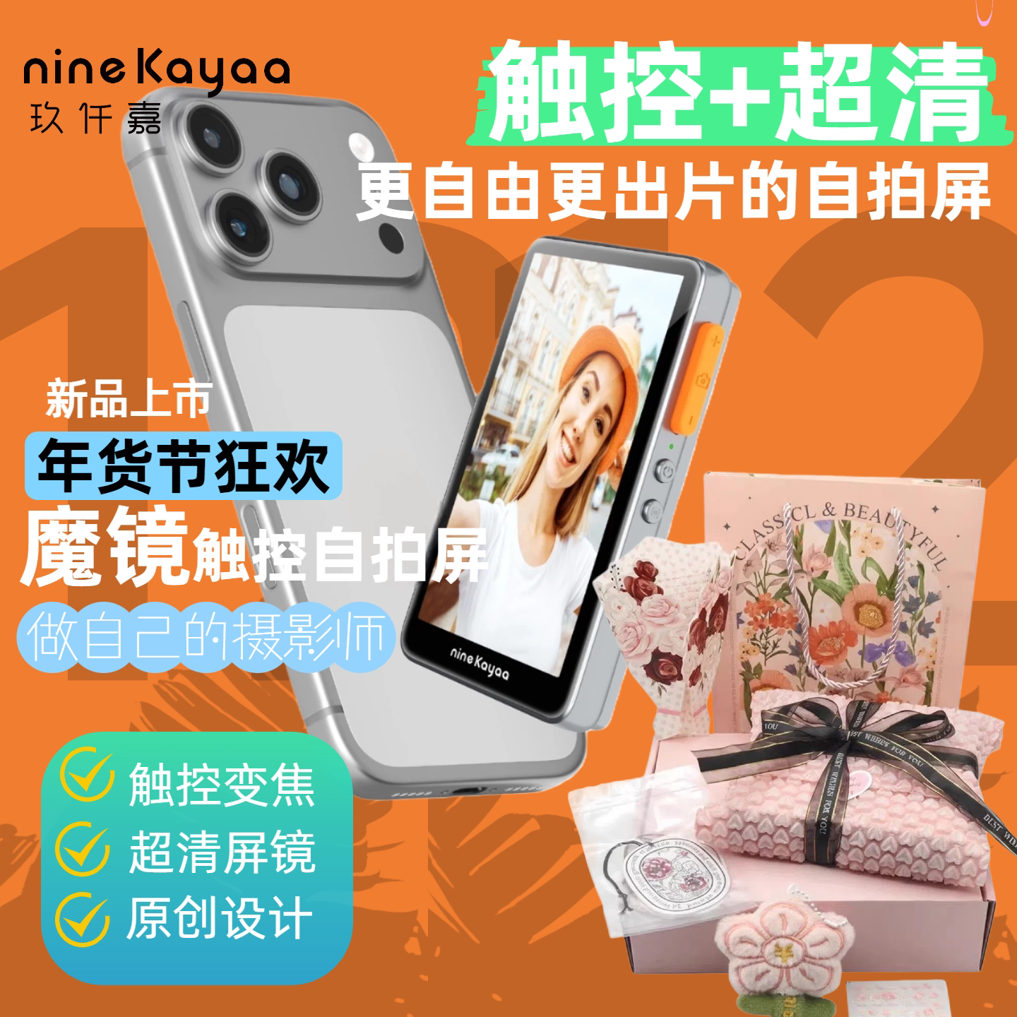 nineKayaa XQ09Ultra女神节礼盒手机投屏器磁吸无线同屏超清屏多点触屏双控功能时尚魔镜自拍屏