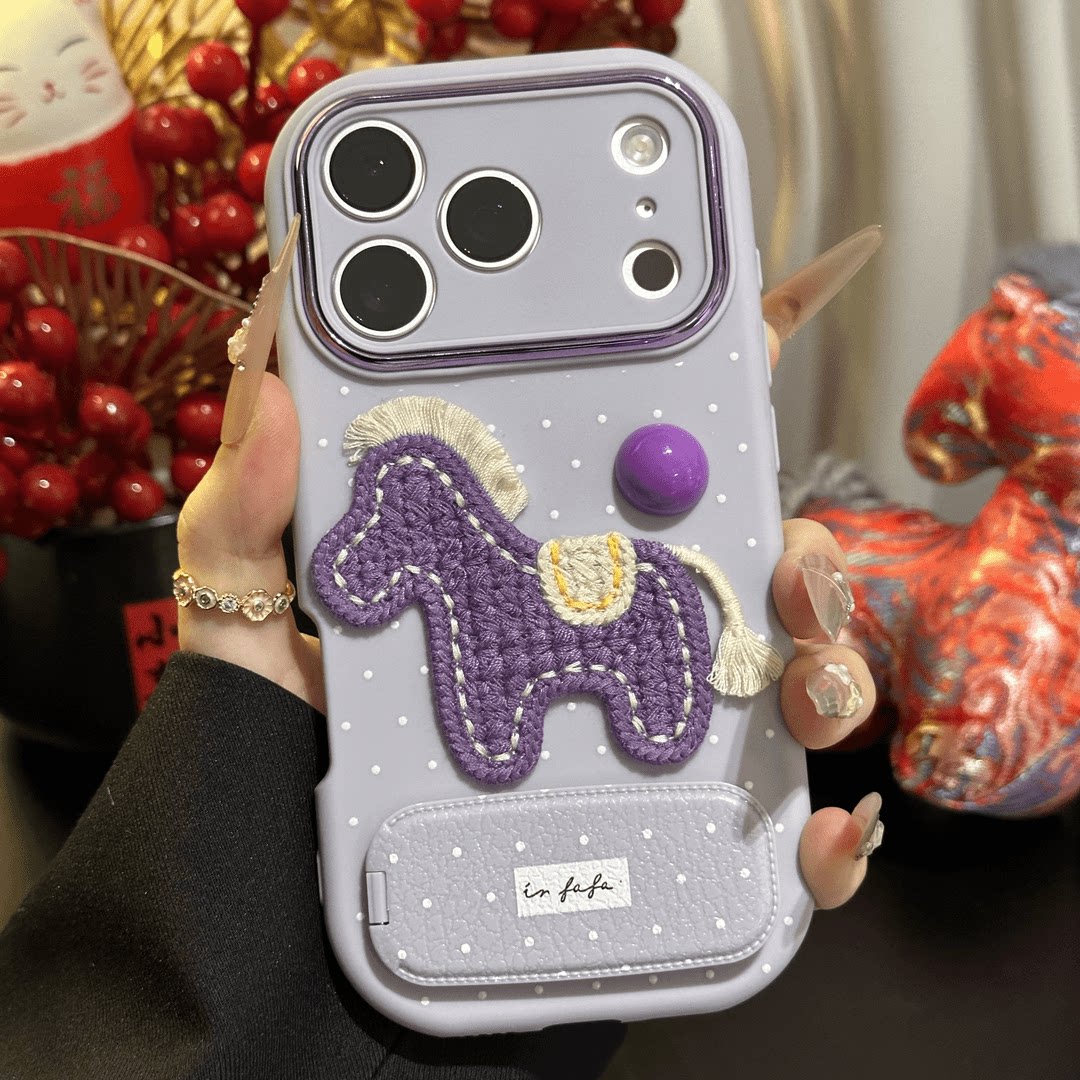 刺绣紫球马适用iPhone16pro手机壳17苹果15promax小众12个性11华为mate70新款k80时尚vivox200小米14荣耀oppo