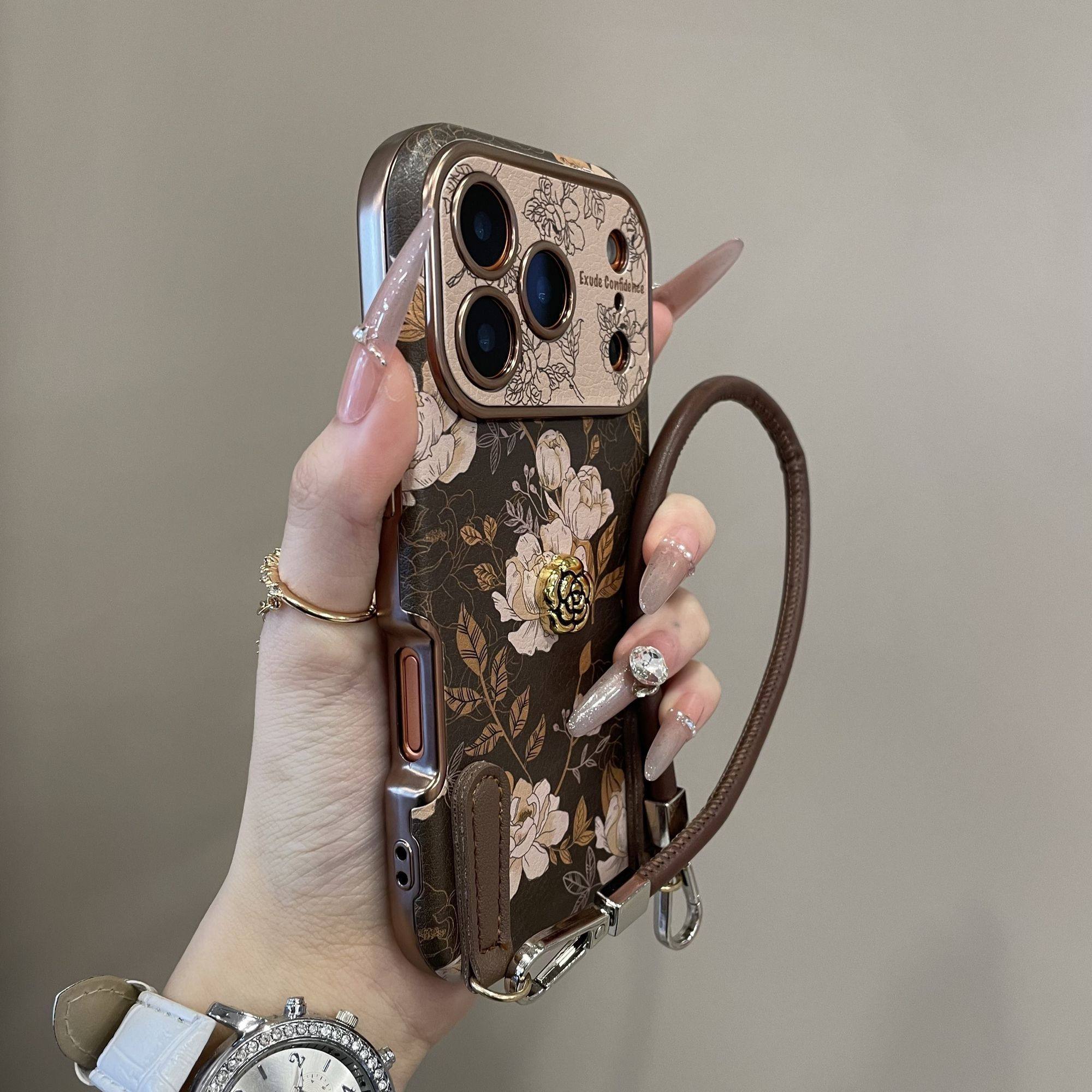 秋冬复古皮质油画花朵适用苹果17promax手机壳全包iphone16pro时尚15气质14防摔13保护套