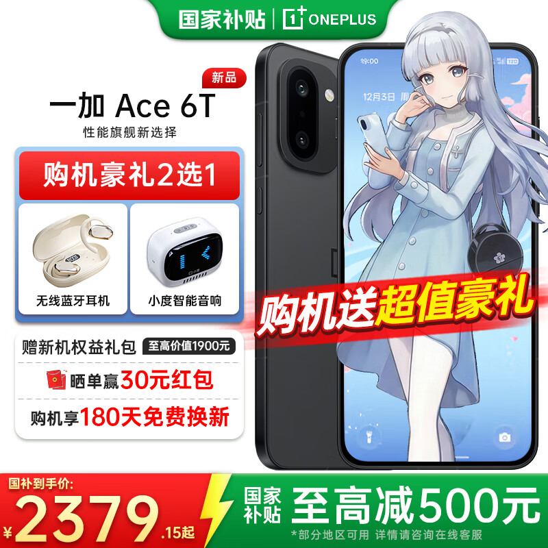 一加【国家补贴】一加 Ace 6T 手机第五代骁龙8性能旗舰 学生游戏165hz超高刷电竞屏 一加ace6t手机 闪速黑 12+256 官方标配